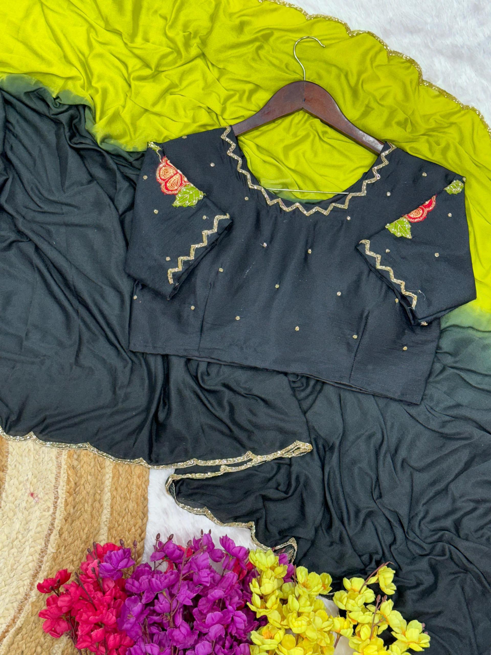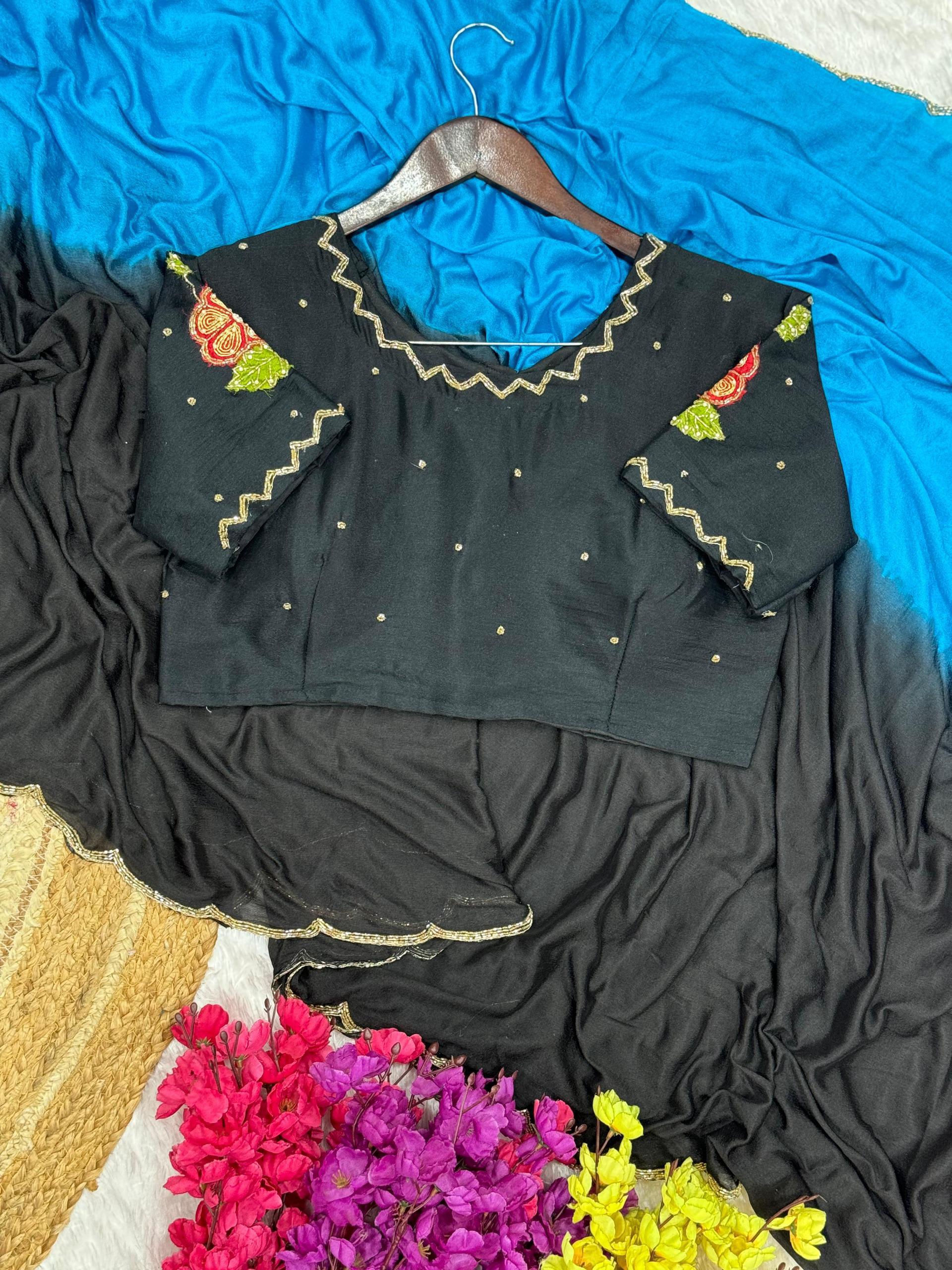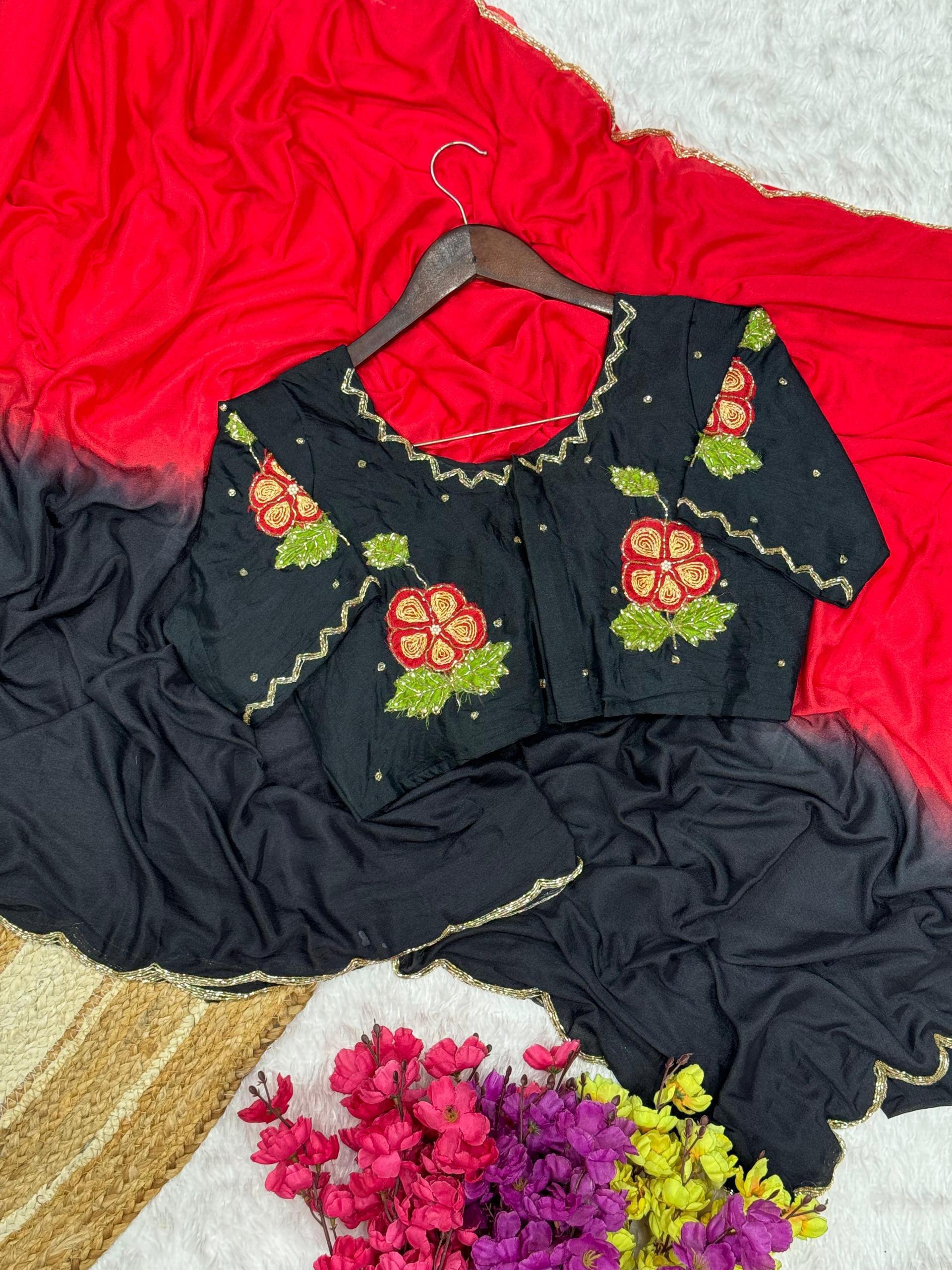 Soft Hand Dyeing Chinnon In Two Shades Cover With Three Layer Cutdana And Double Layer Arco Border 🔝