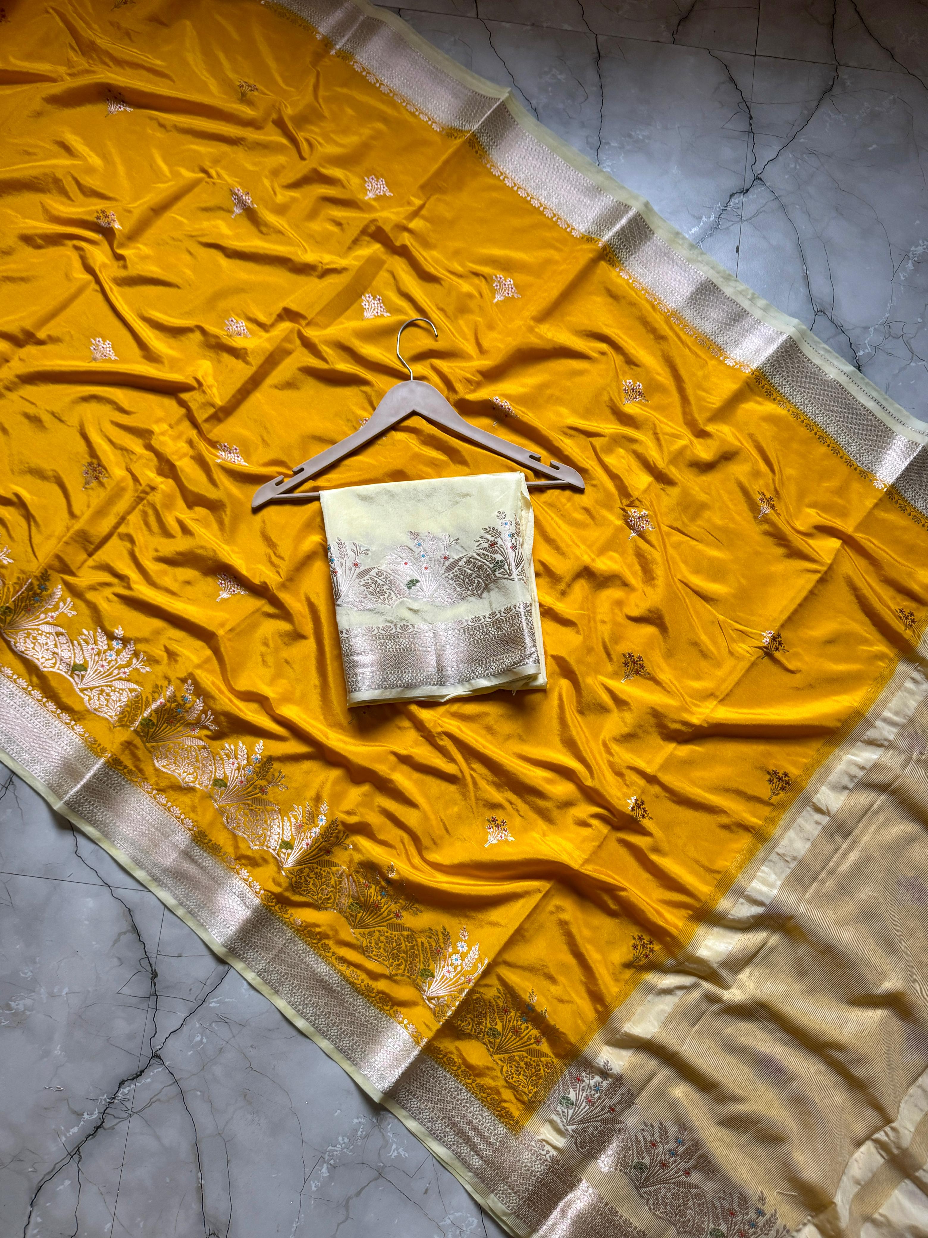 Banarasi handloom row mango silk dyble fabric Sarees