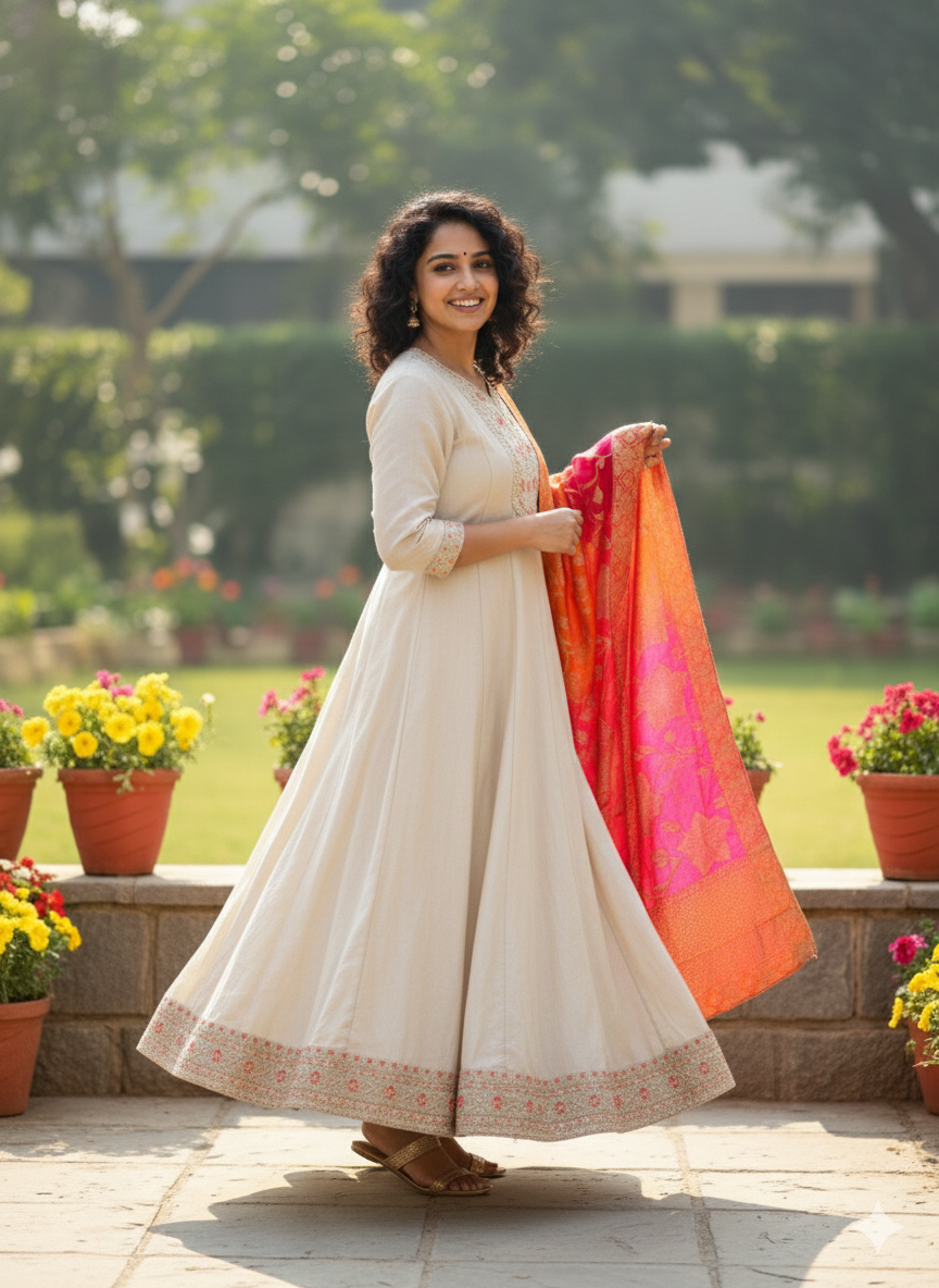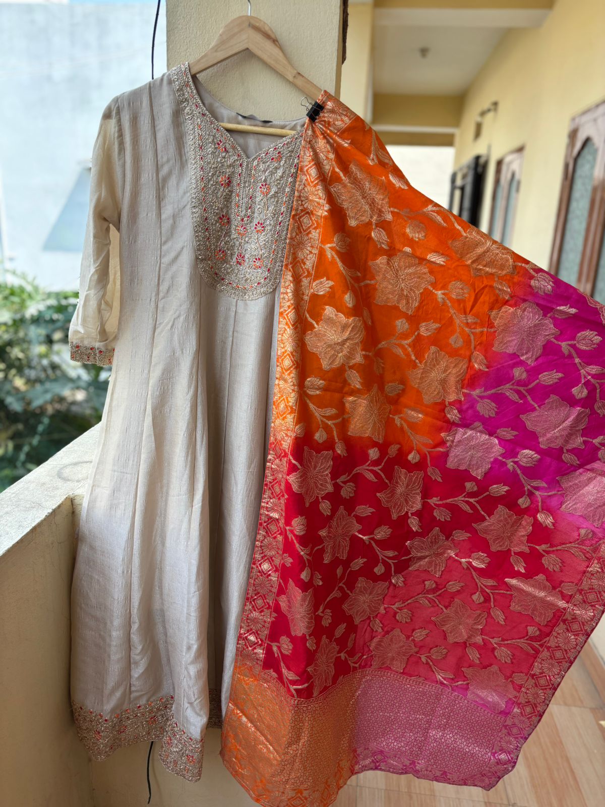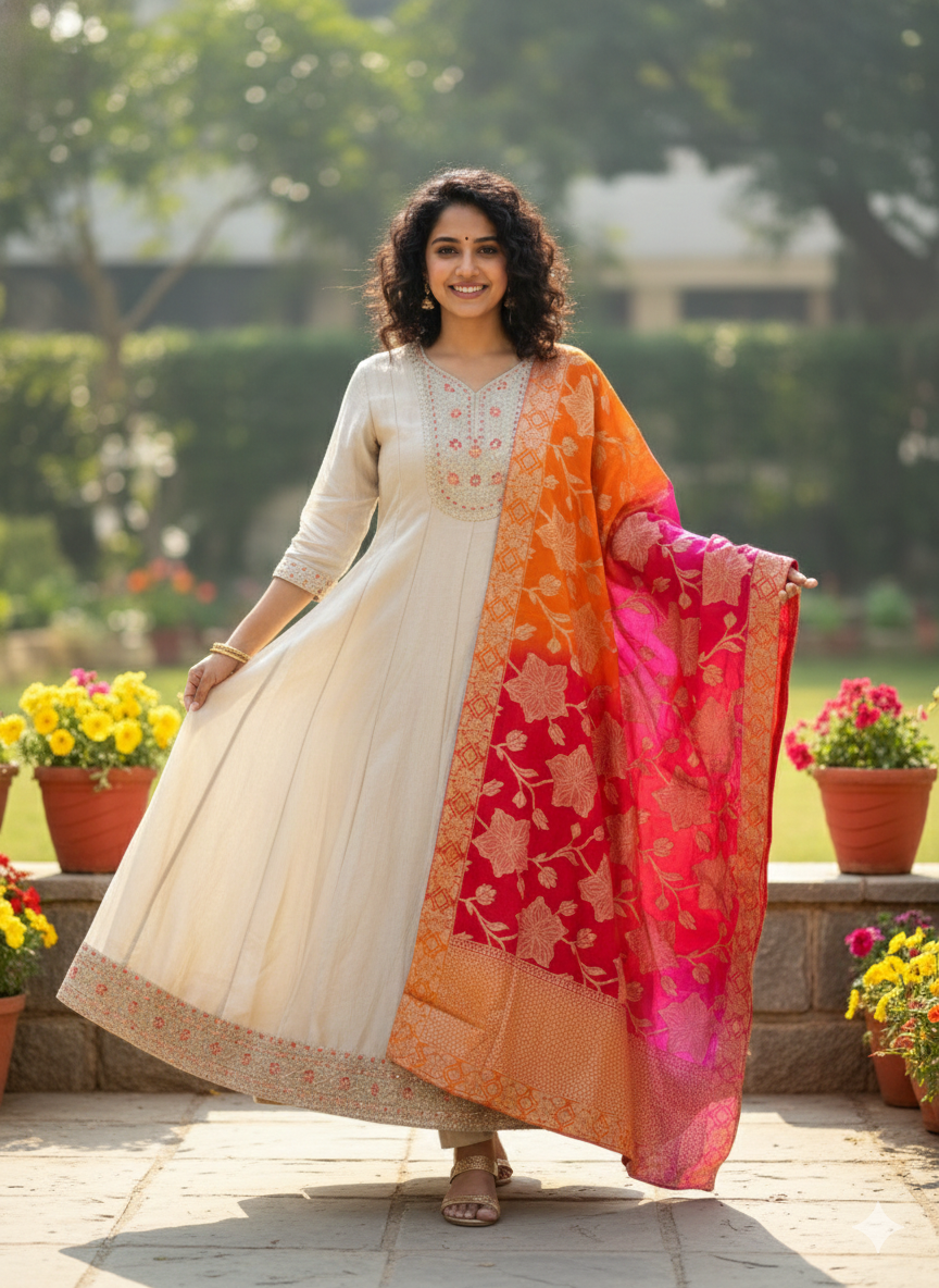 Chinnon frock With banarasi dupatta