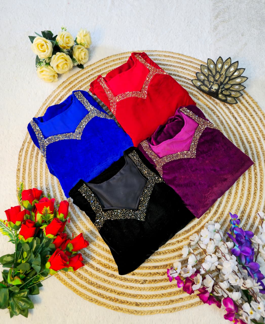 ▫️ FABRIC     :- * Premium 9000 Velvet with Designer Hand Work