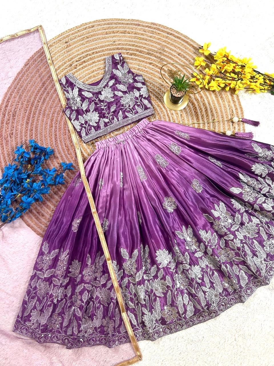 Embroidered Silk Lehenga Choli With Net Dupatta