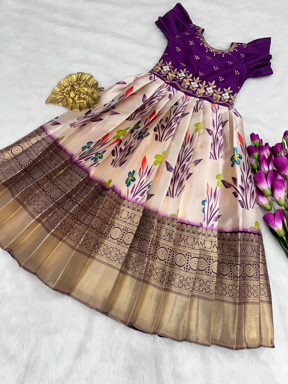 full stiched pure silk febric with heavy digital print work border Kids gown