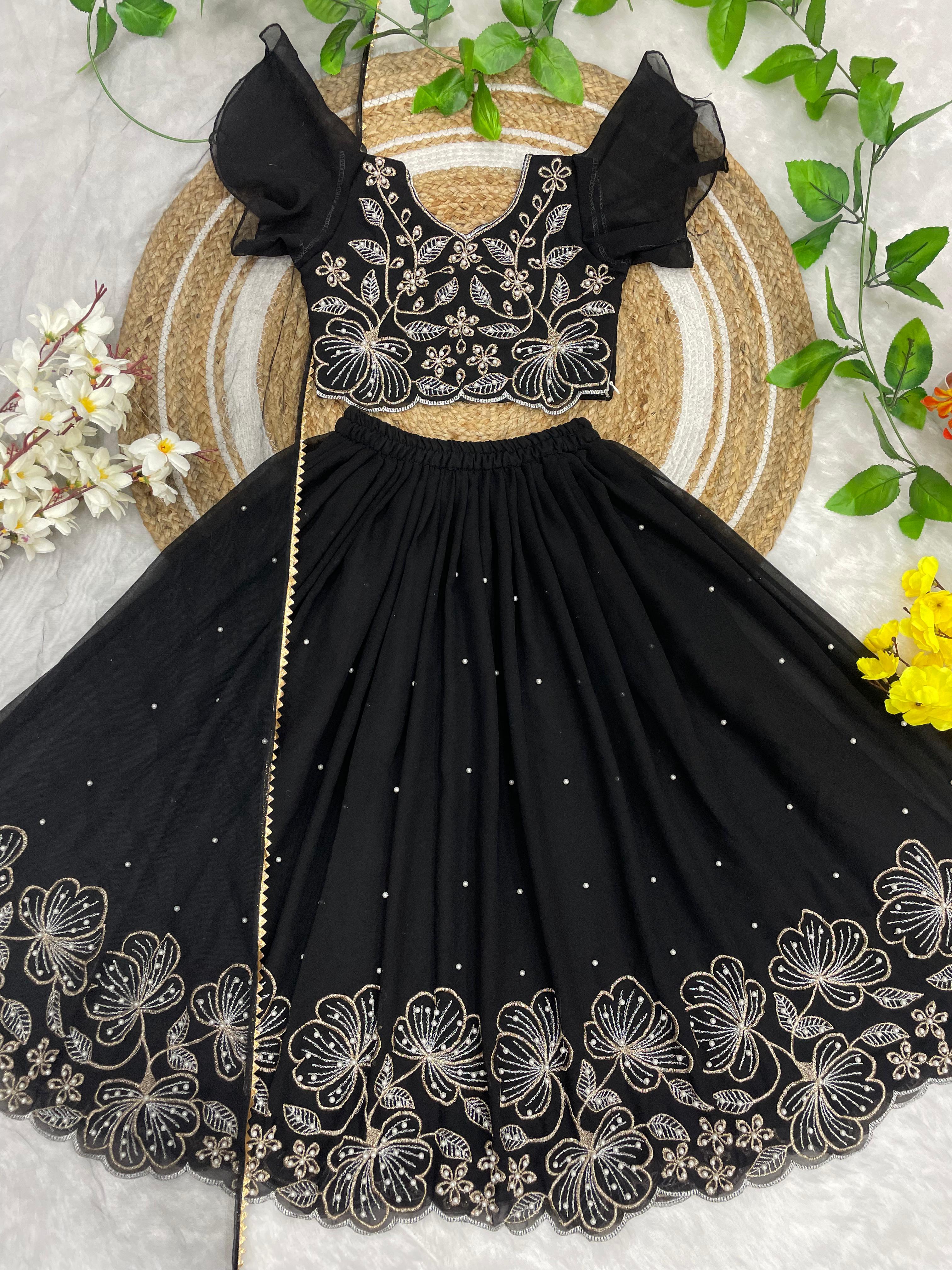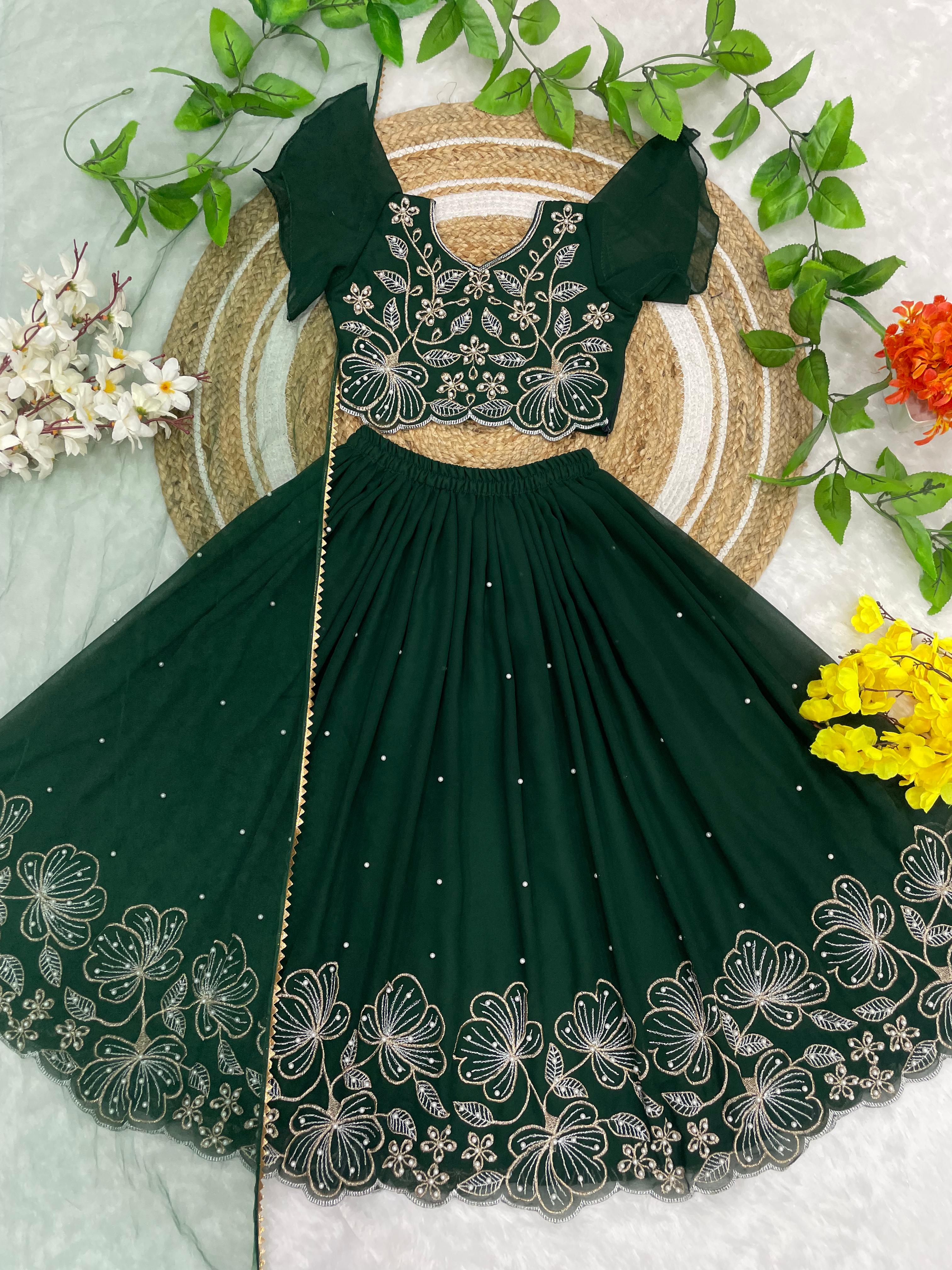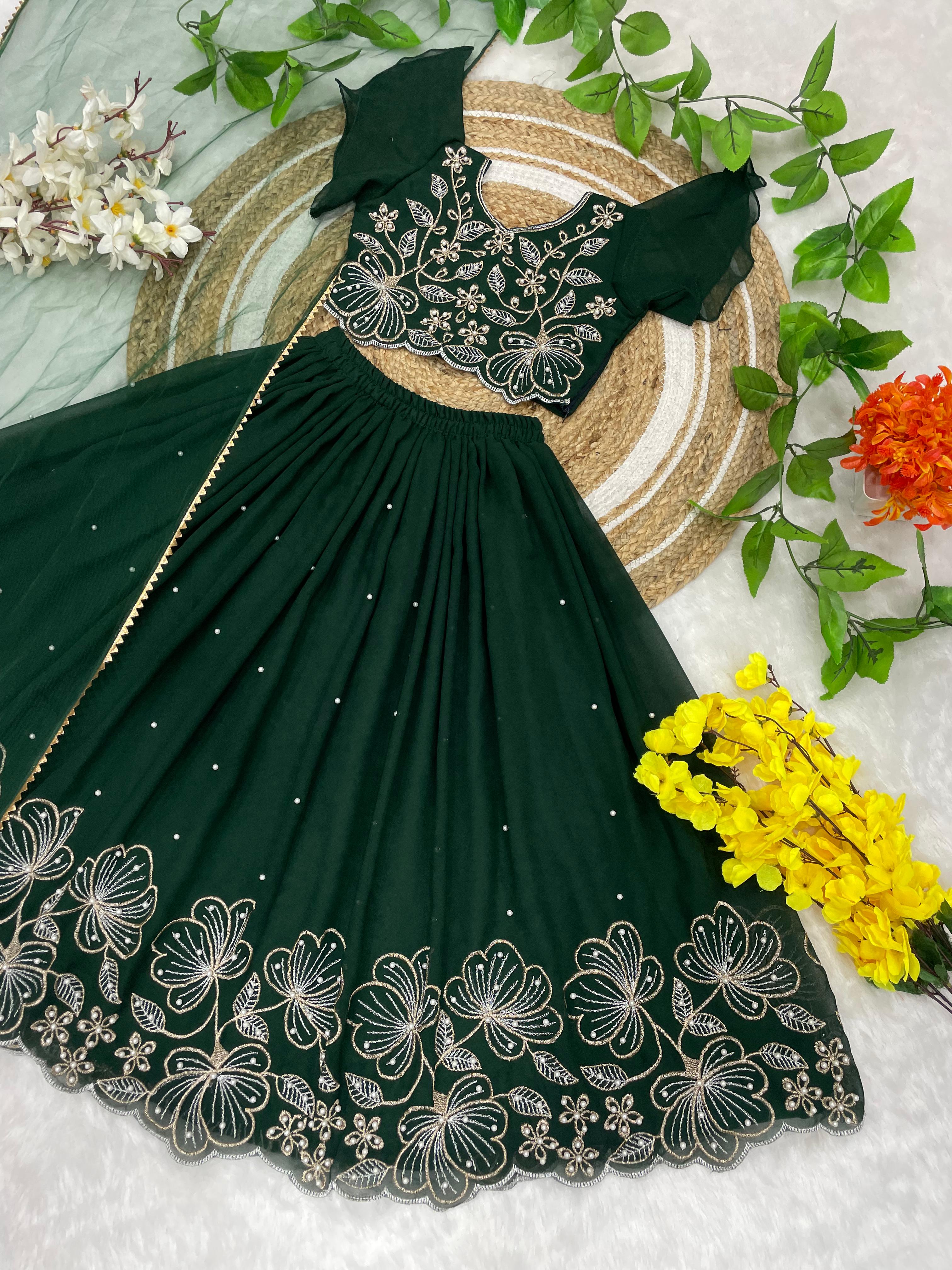A beautiful traditional Indian ethnic outfit for girls, perfect for festivals, weddings, and special occasions. This elegant lehenga–choli set features rich colors and intricate floral embroidery, giving it a royal and graceful appeal.