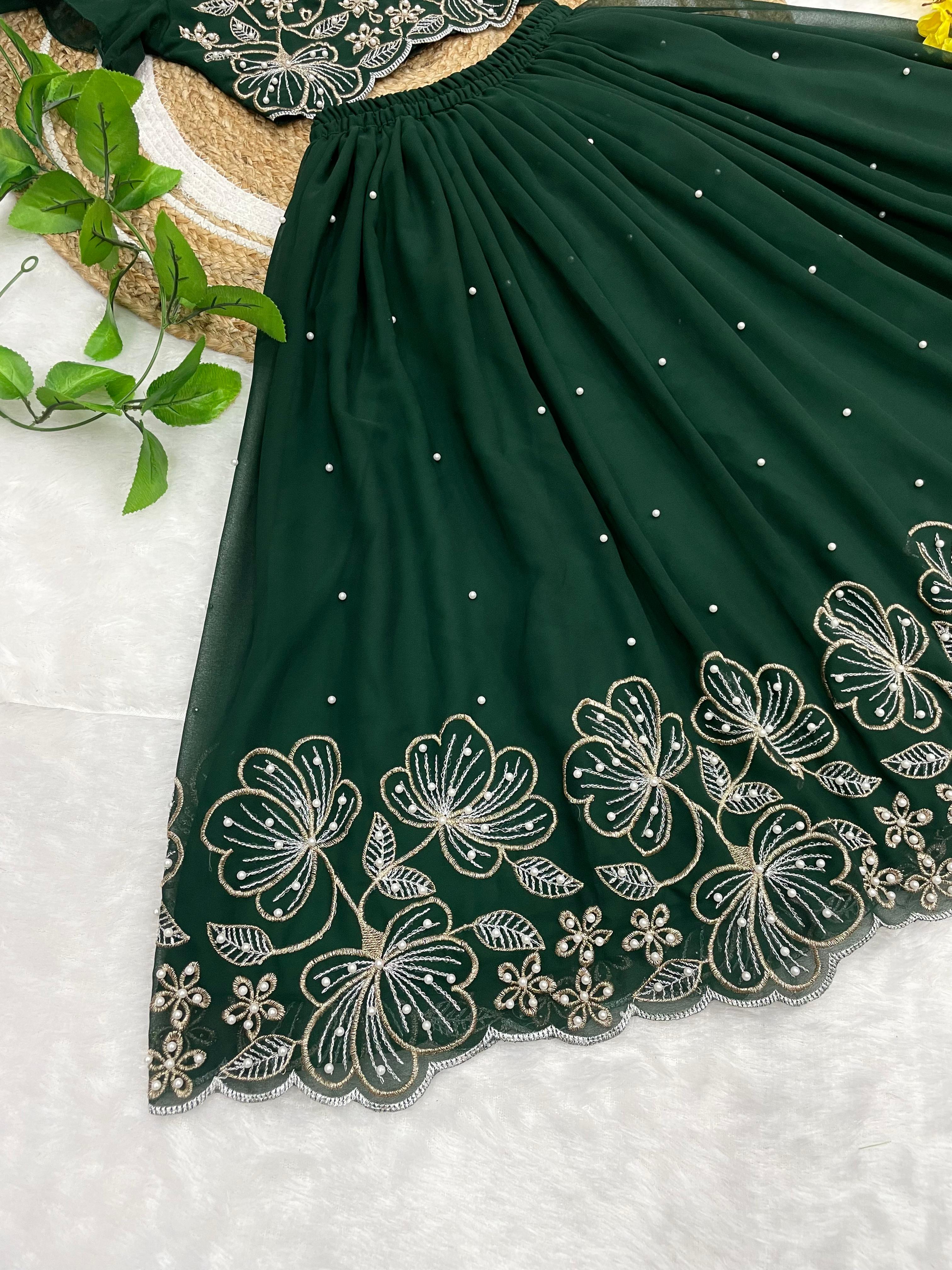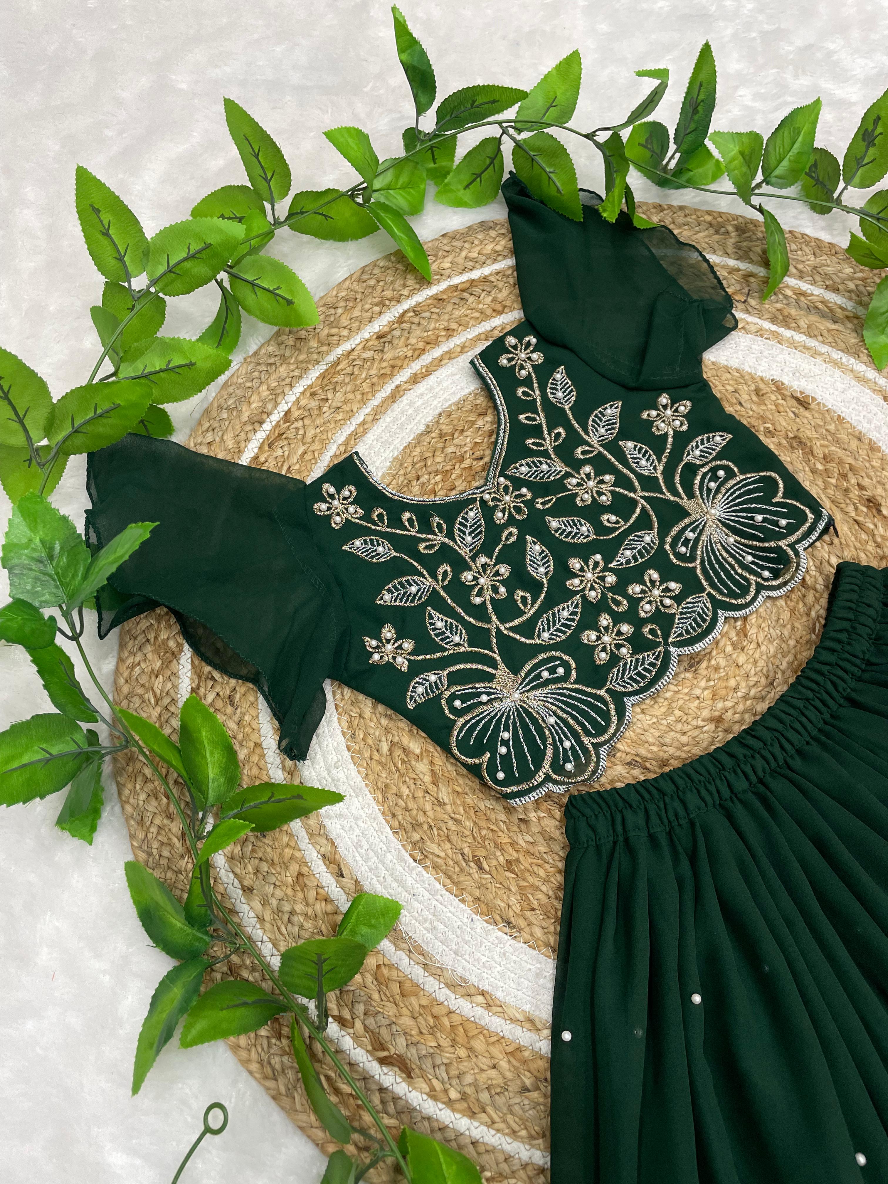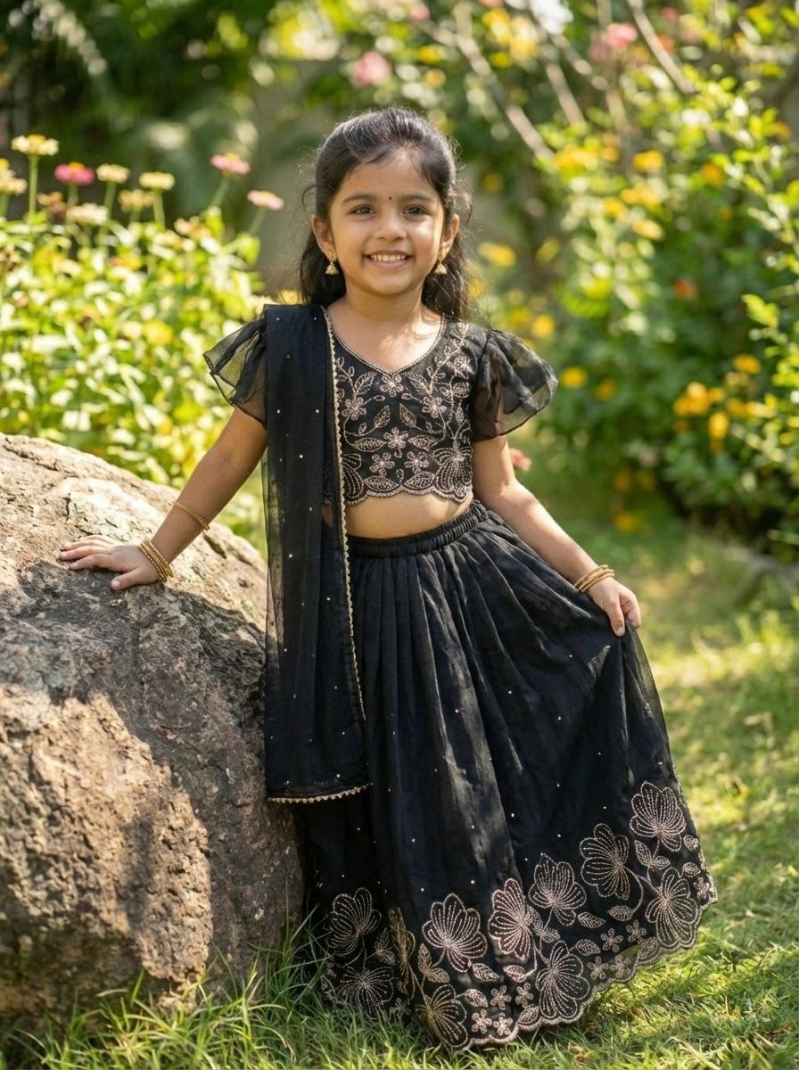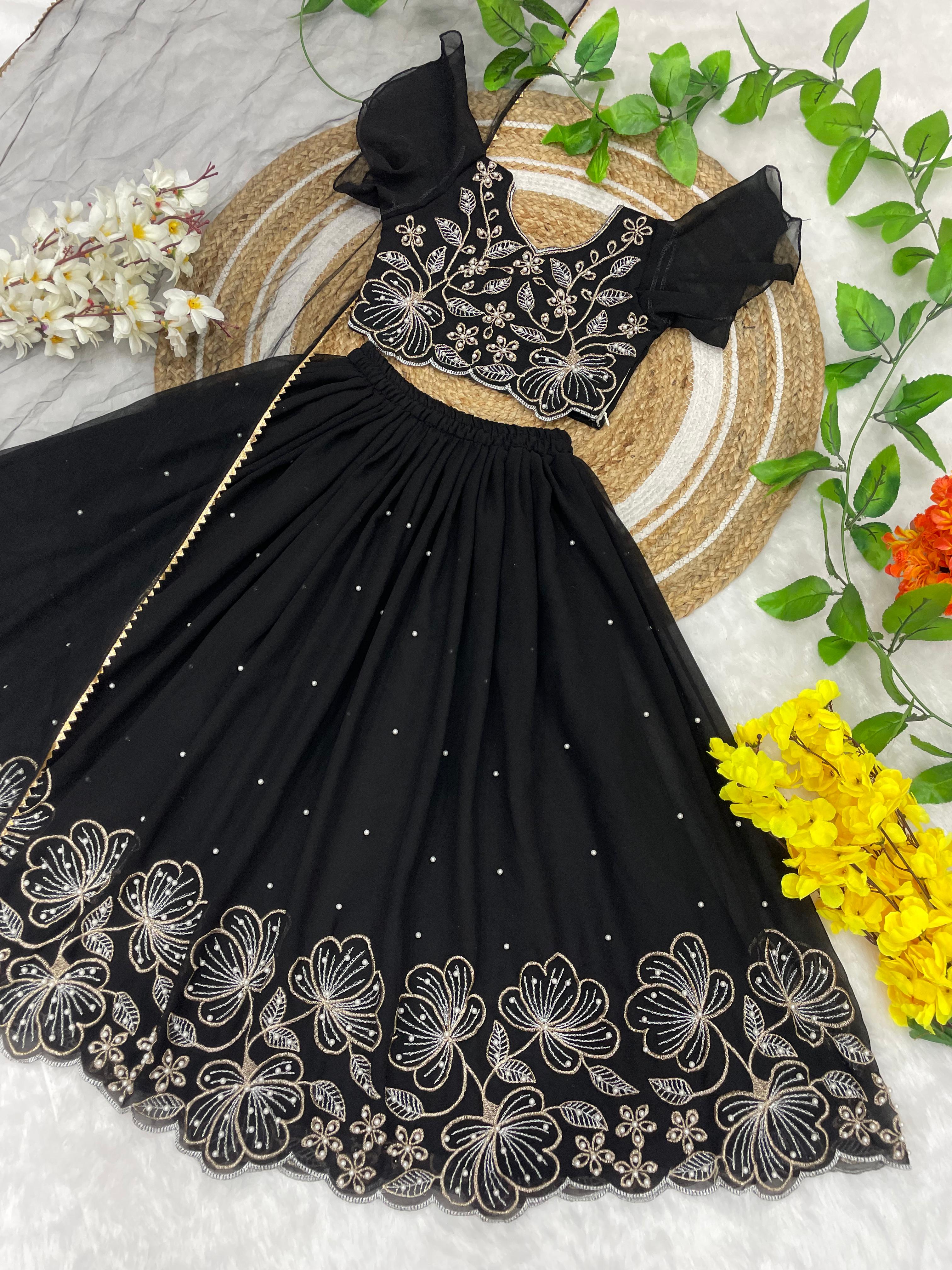 A beautiful traditional Indian ethnic outfit for girls, perfect for festivals, weddings, and special occasions. This elegant lehenga–choli set features rich colors and intricate floral embroidery, giving it a royal and graceful appeal.