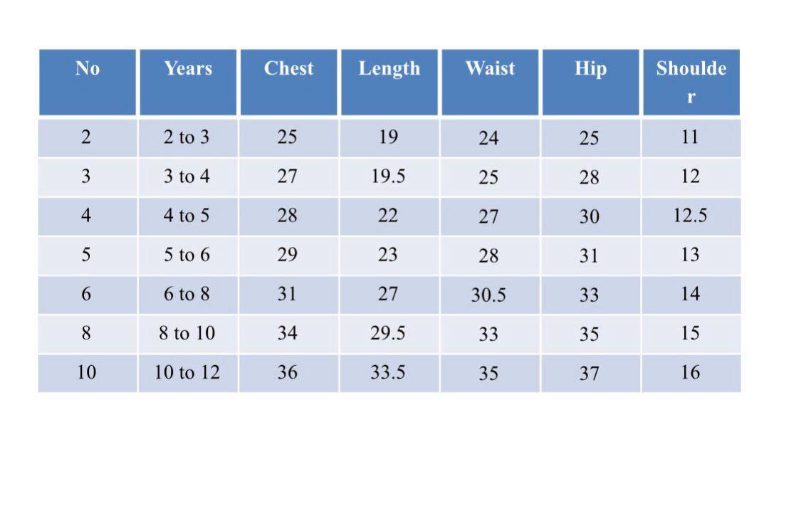 REFER SIZE CHART IN SEPARATE IMAGE ATTACHED HERE