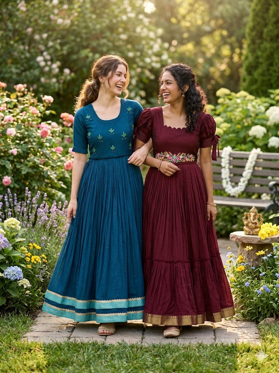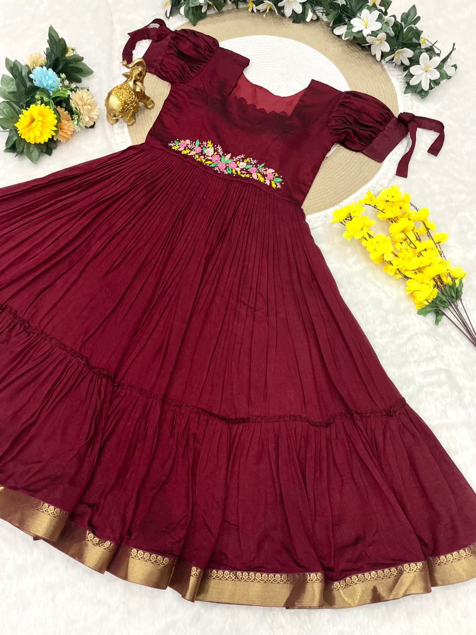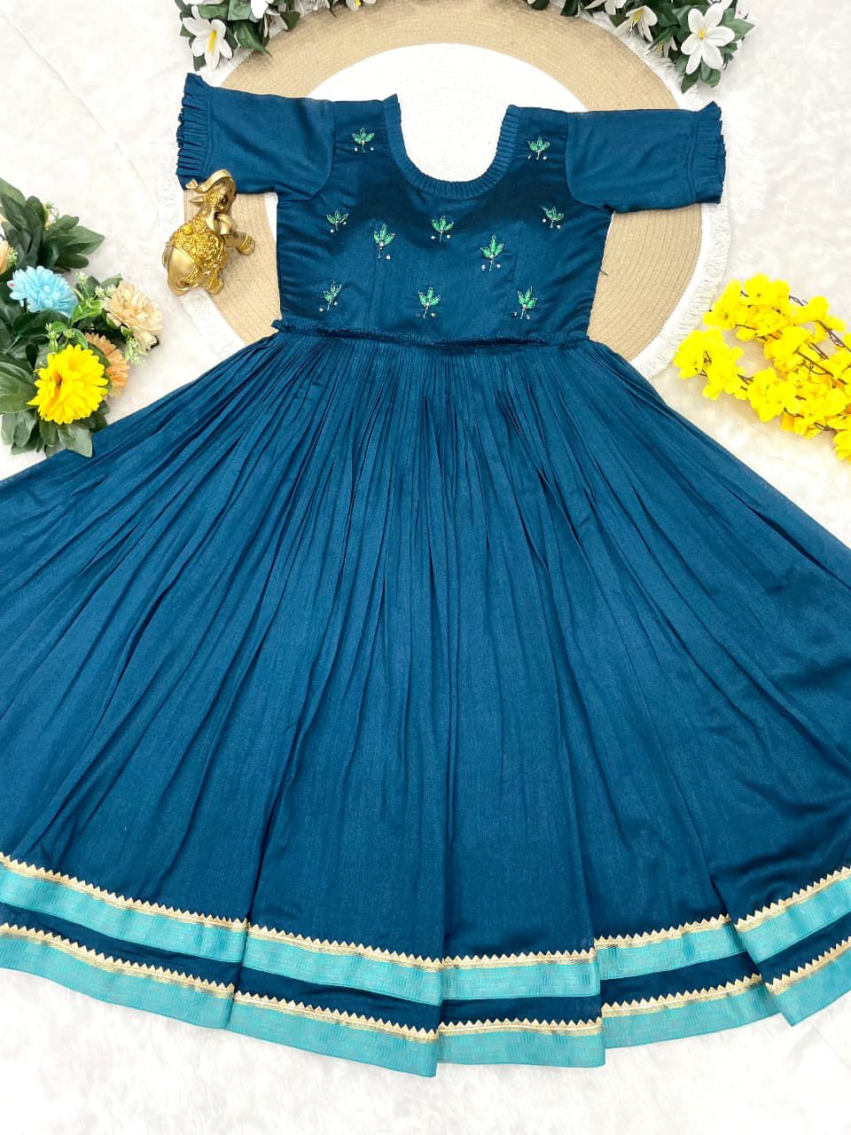 ◾ MIDI FROCK : Beautifully Vichitra-Silk Stitched Unique Maggam Work Gown & Beautiful Sleeves