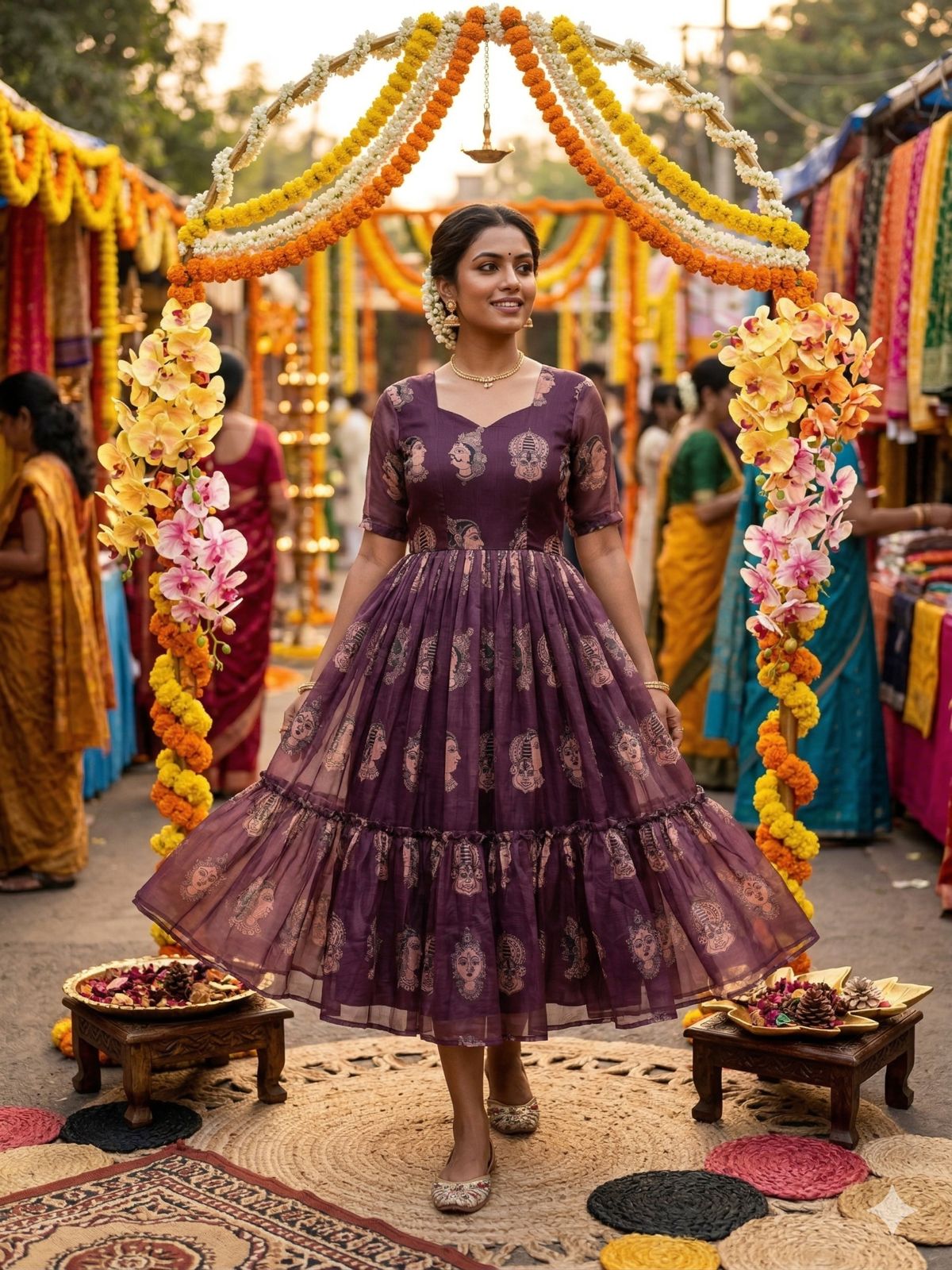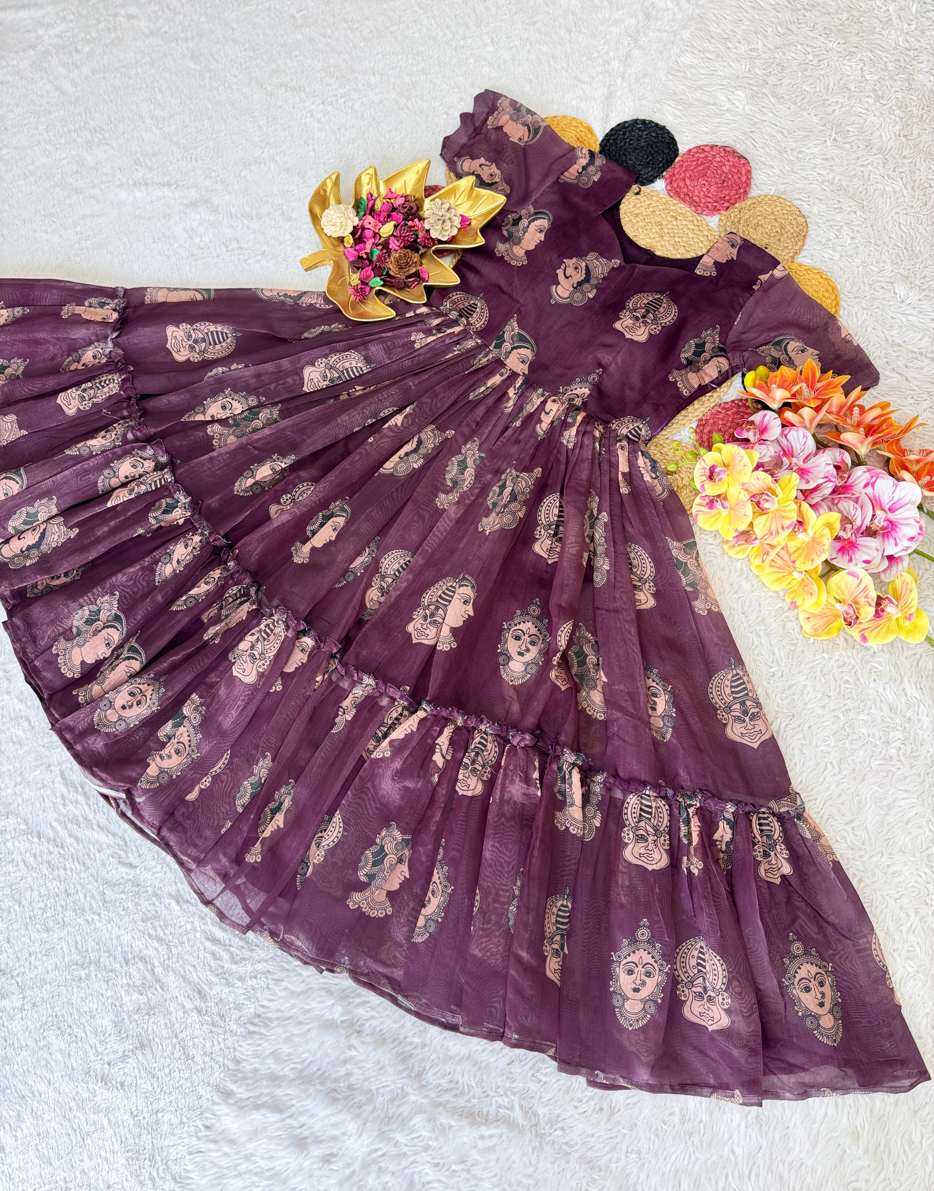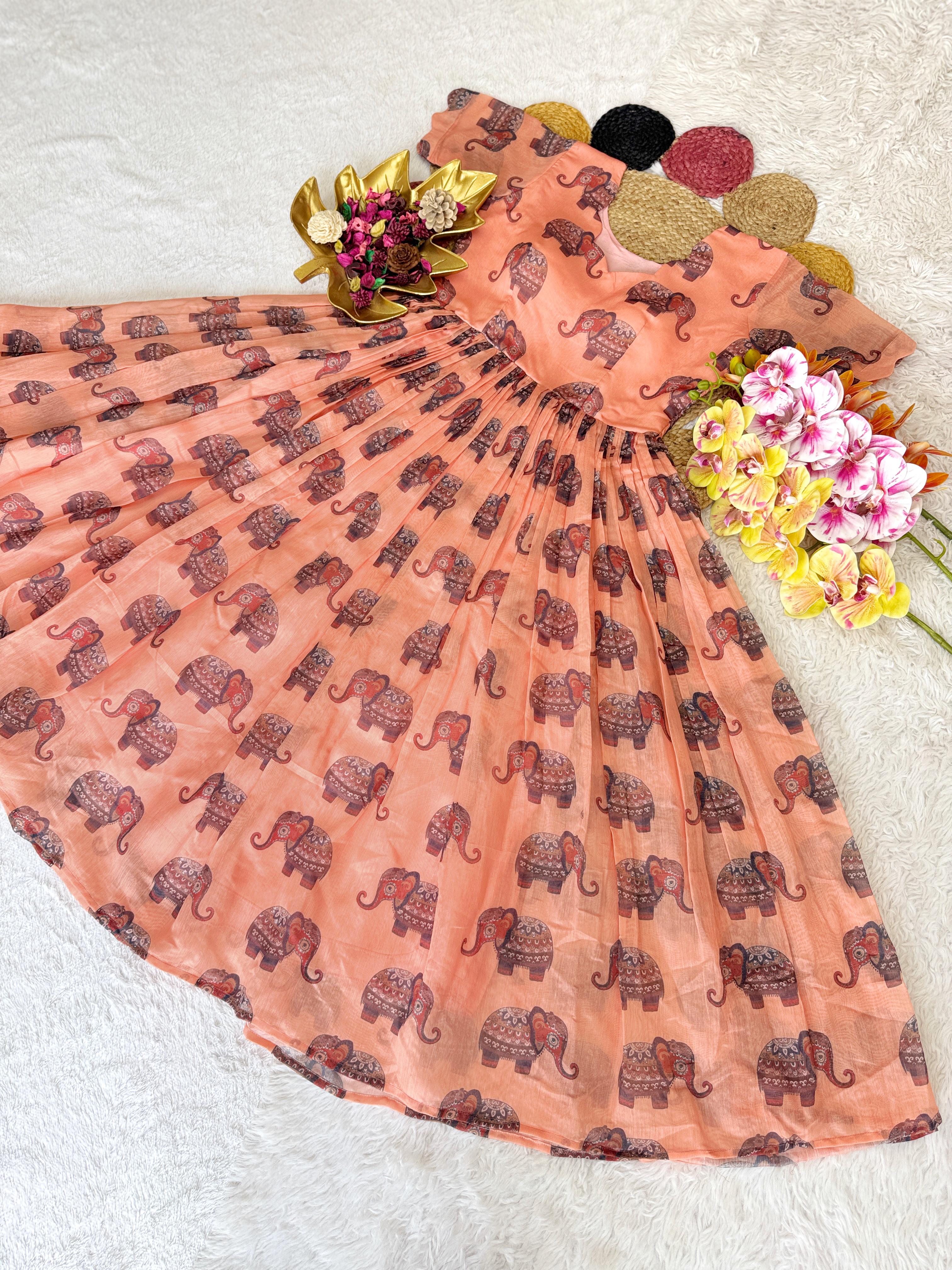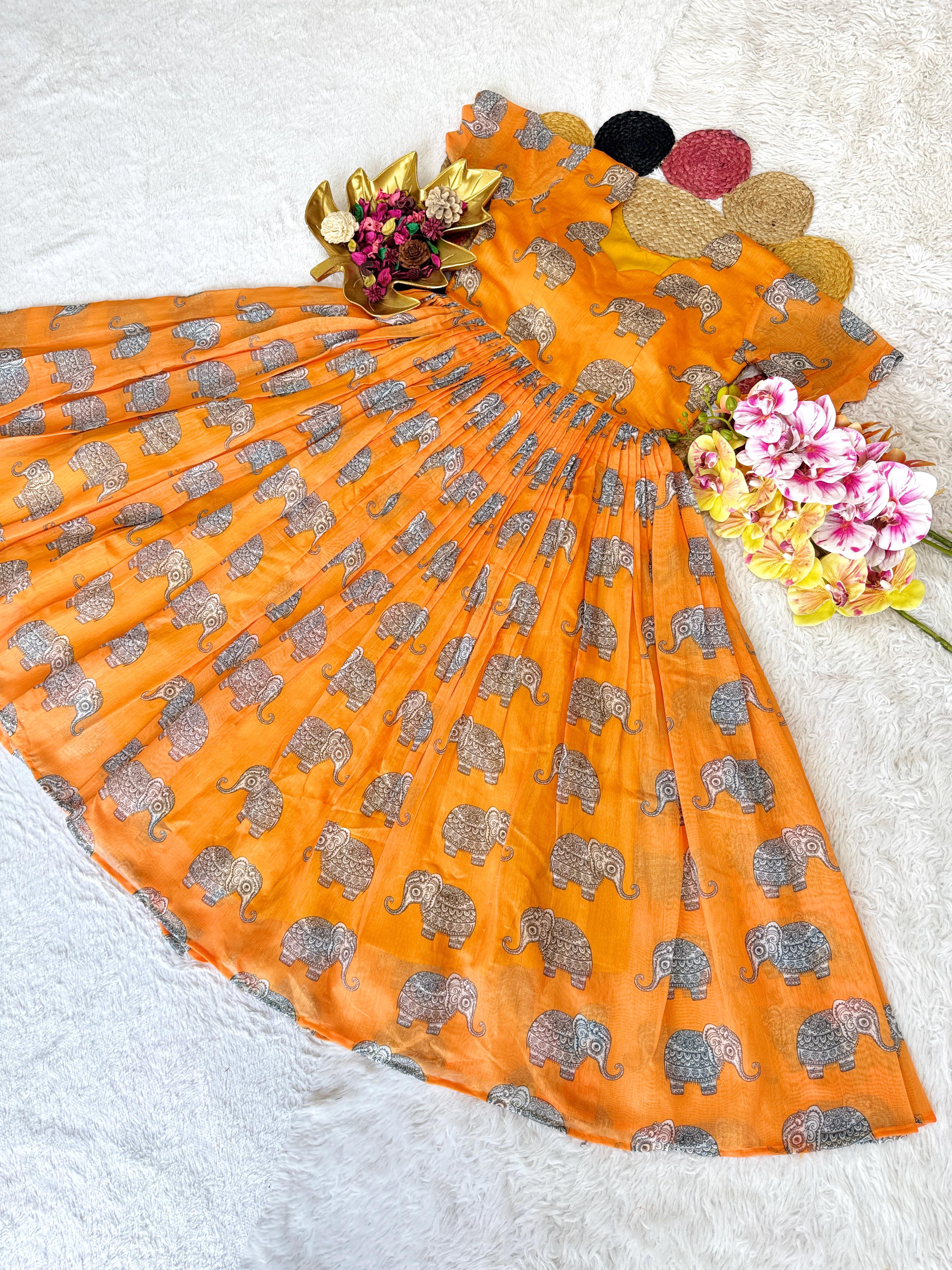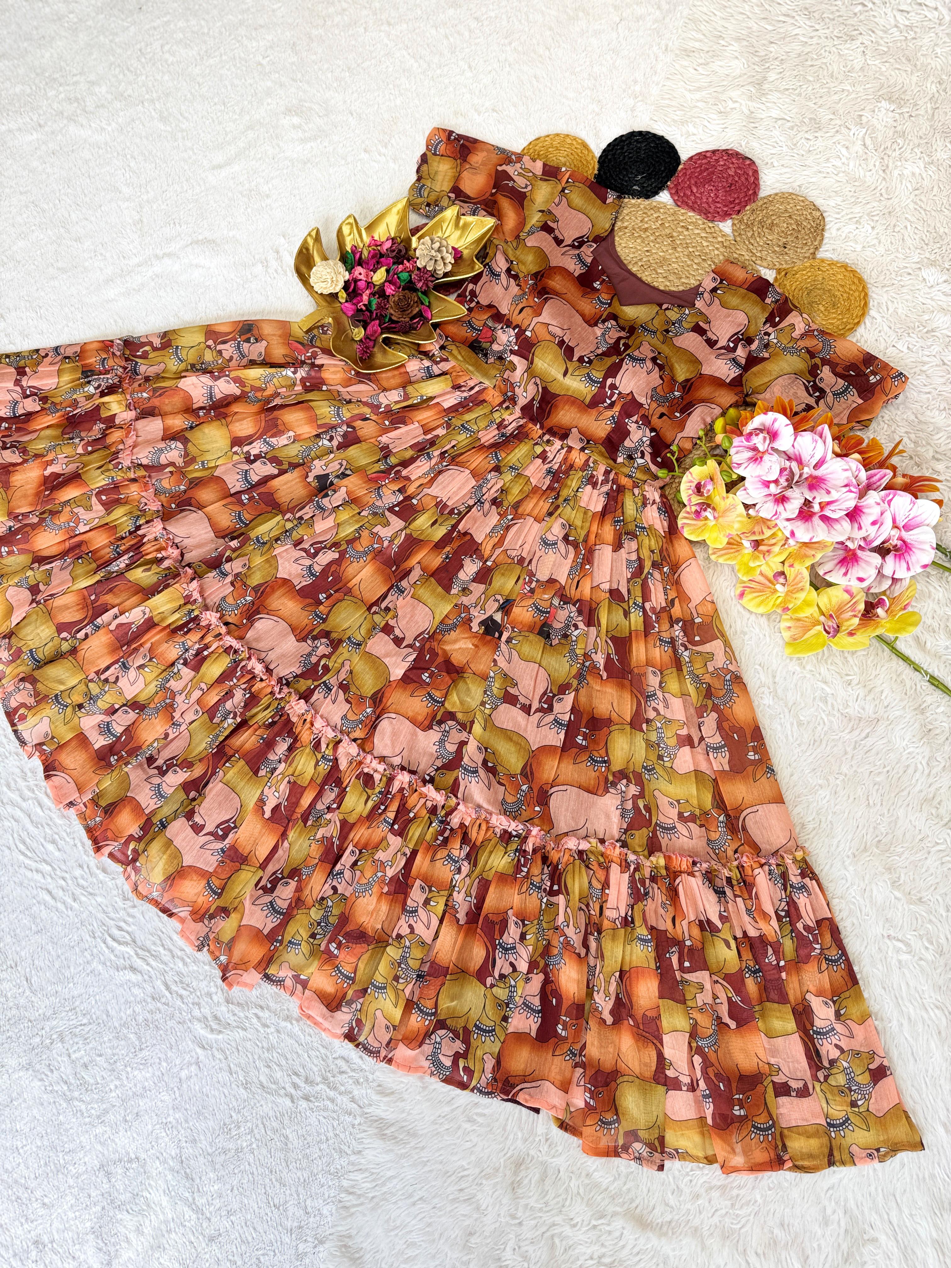 Pure Chanderi Kalamkari Printed Gowns