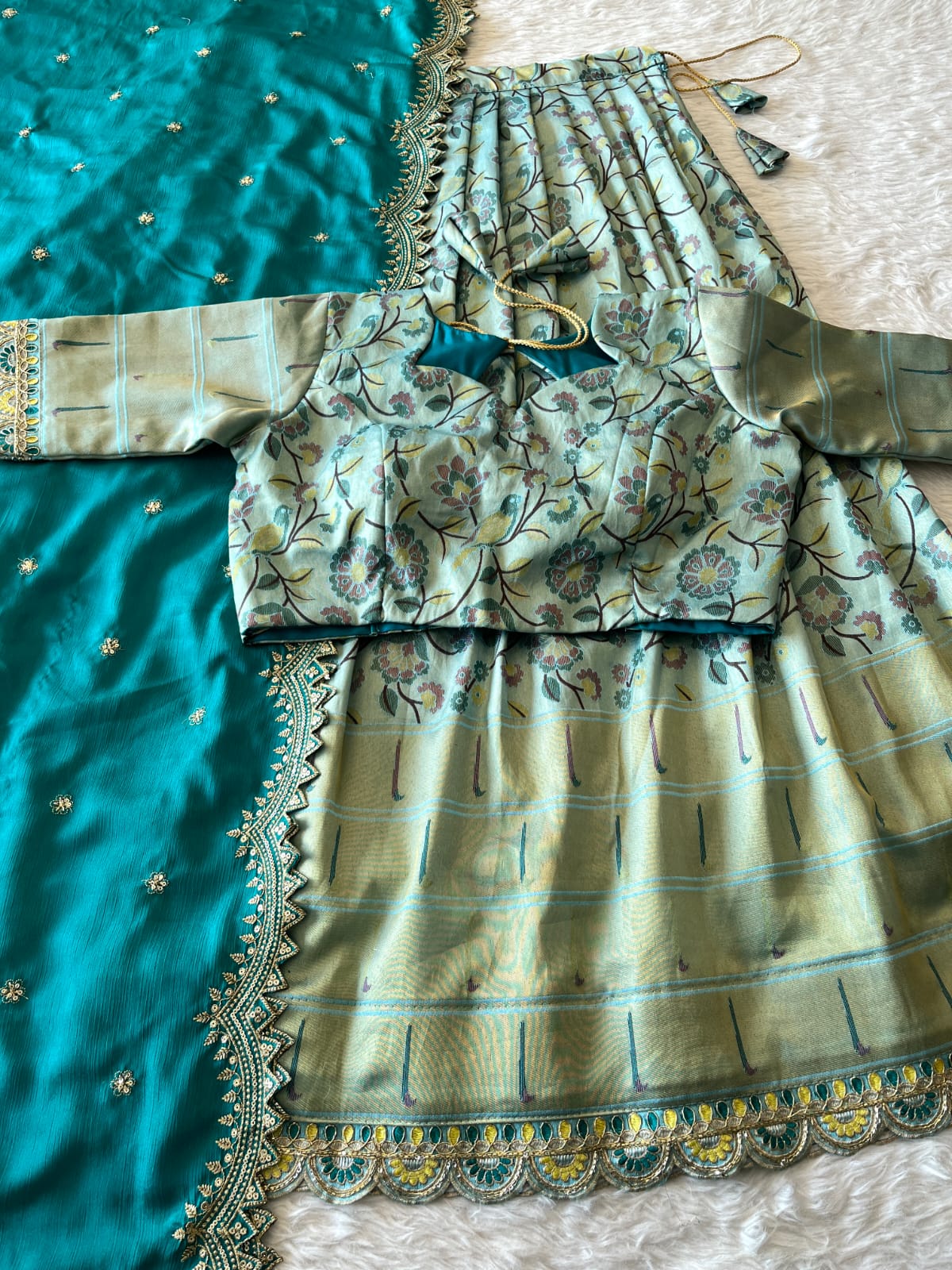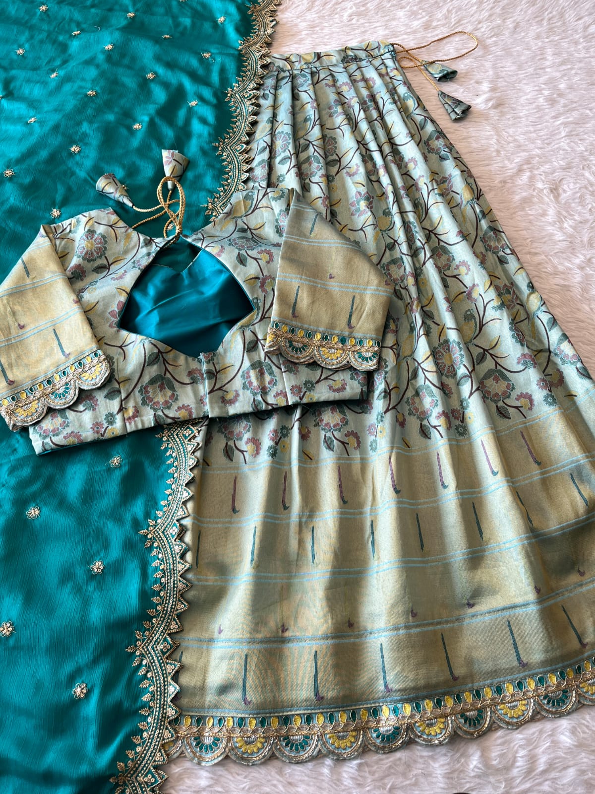 Rich Floral Weave Lehangas