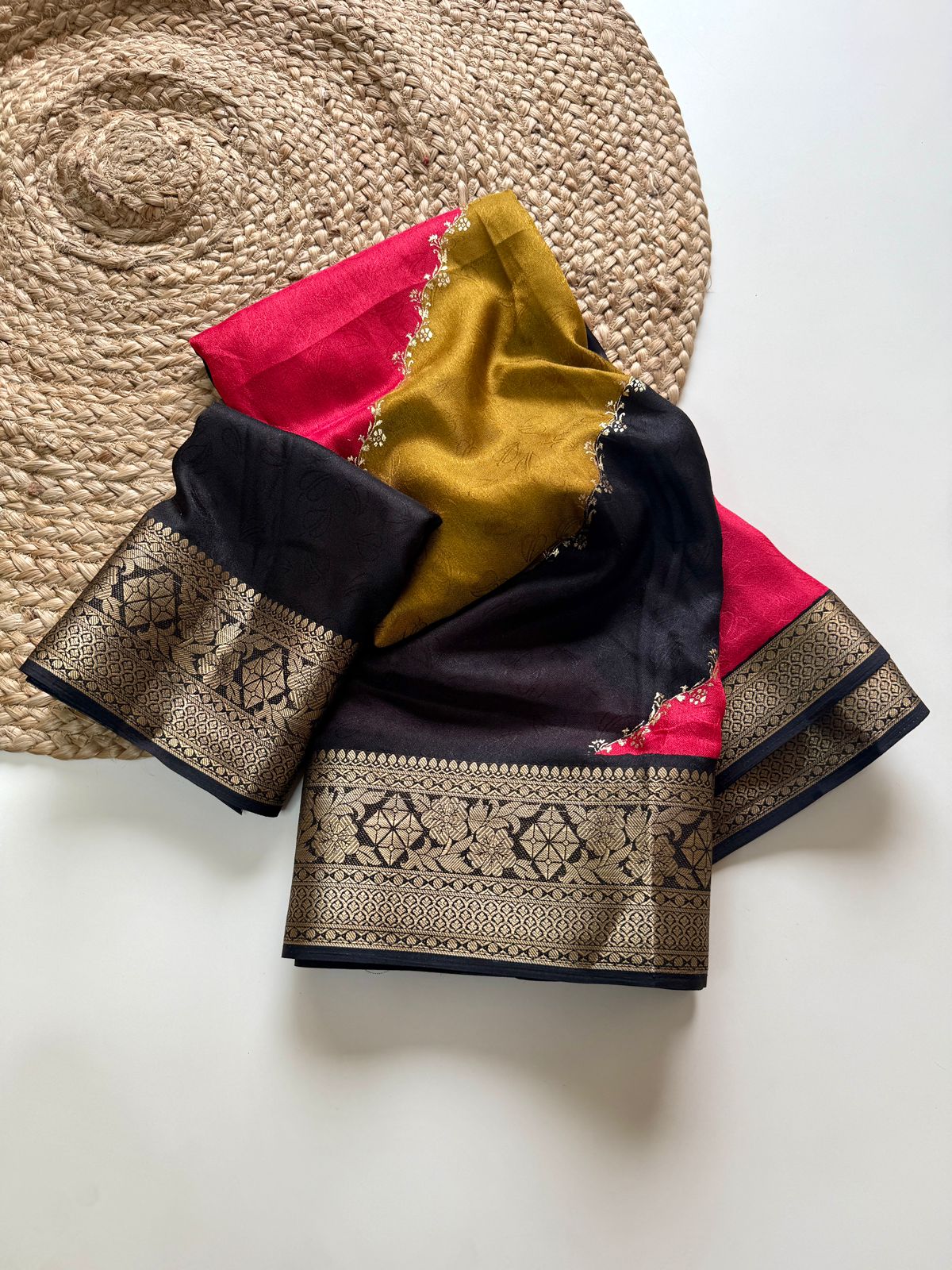 Soft Self Jacquard Marshmallow Foil Printed Multi-Colour Saree
