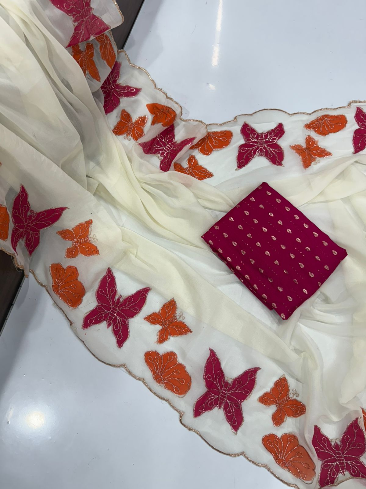 Star Georgette Multi Emrodairy Work And Brush Print Saree
